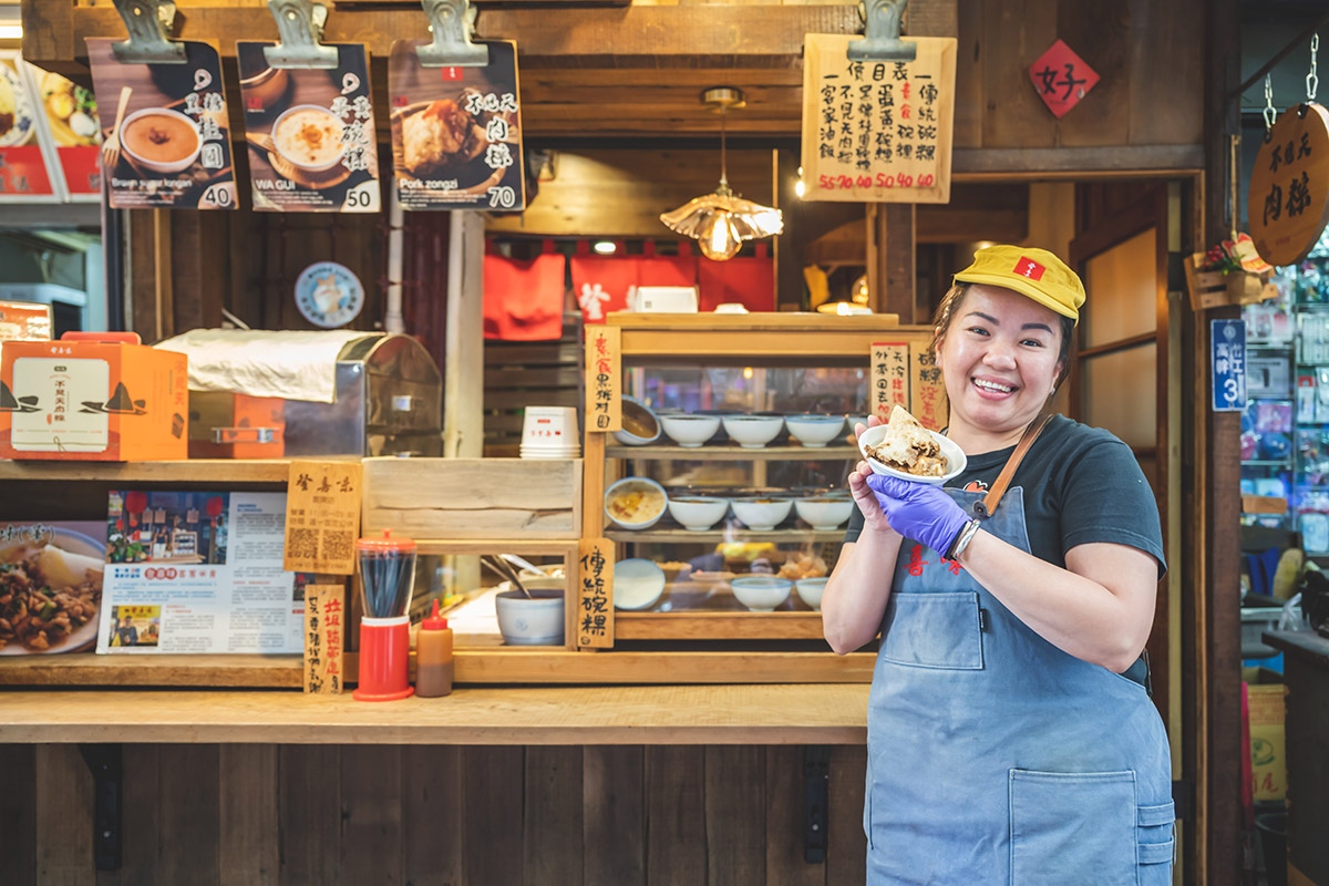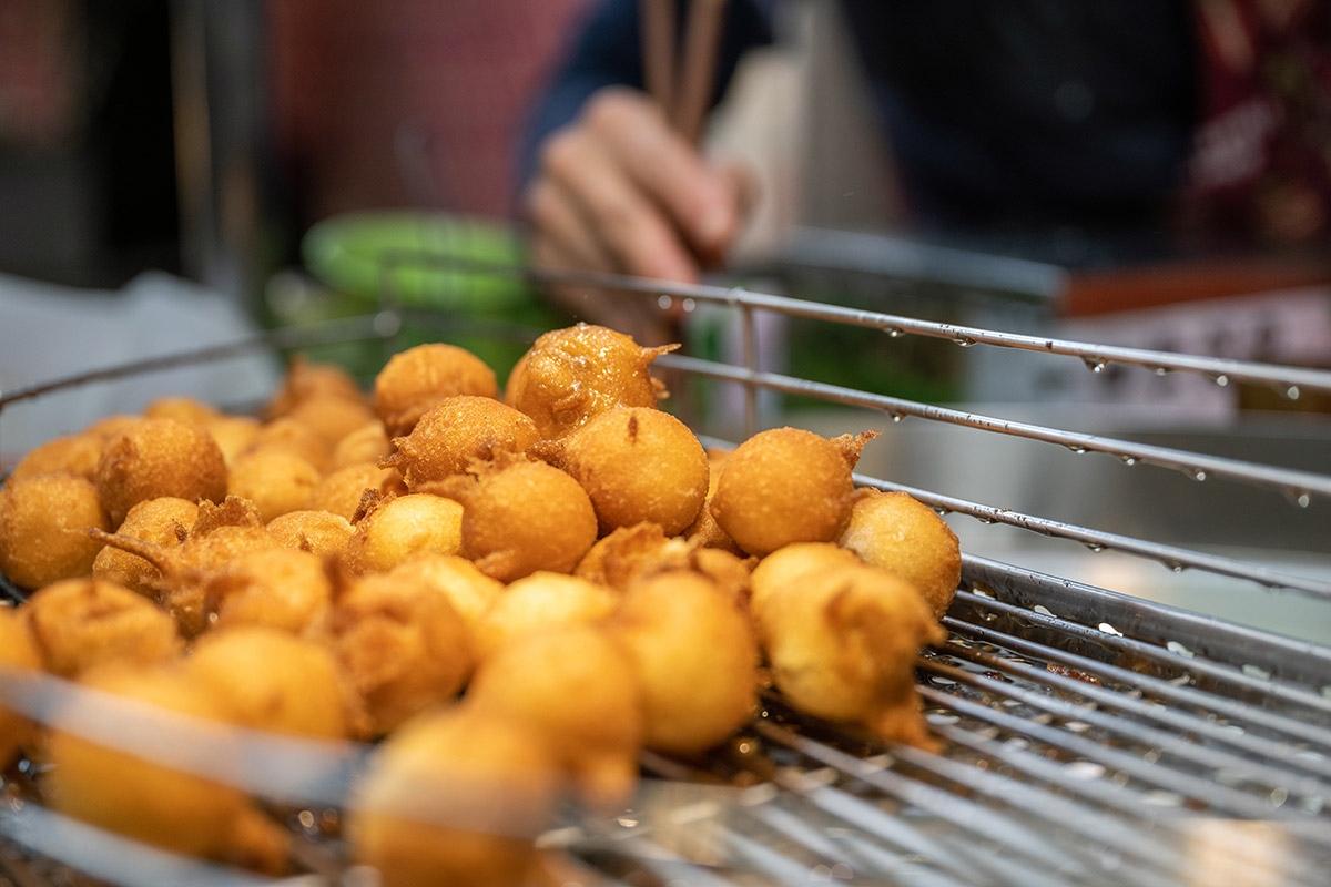 位於廟東美食街入口,是許多豐原人印象中的古早味美食,小小一顆,外皮酥軟綿密、內裡吃得到小塊菱角,鹹、香、酥、軟,到現在仍是超人氣排隊美食。