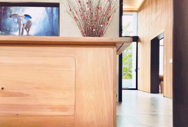 來到慶山接待館內,能同時欣賞詹家父子兩代不同風格的木製傢俱作品,看見藝術世代傳承的美好。