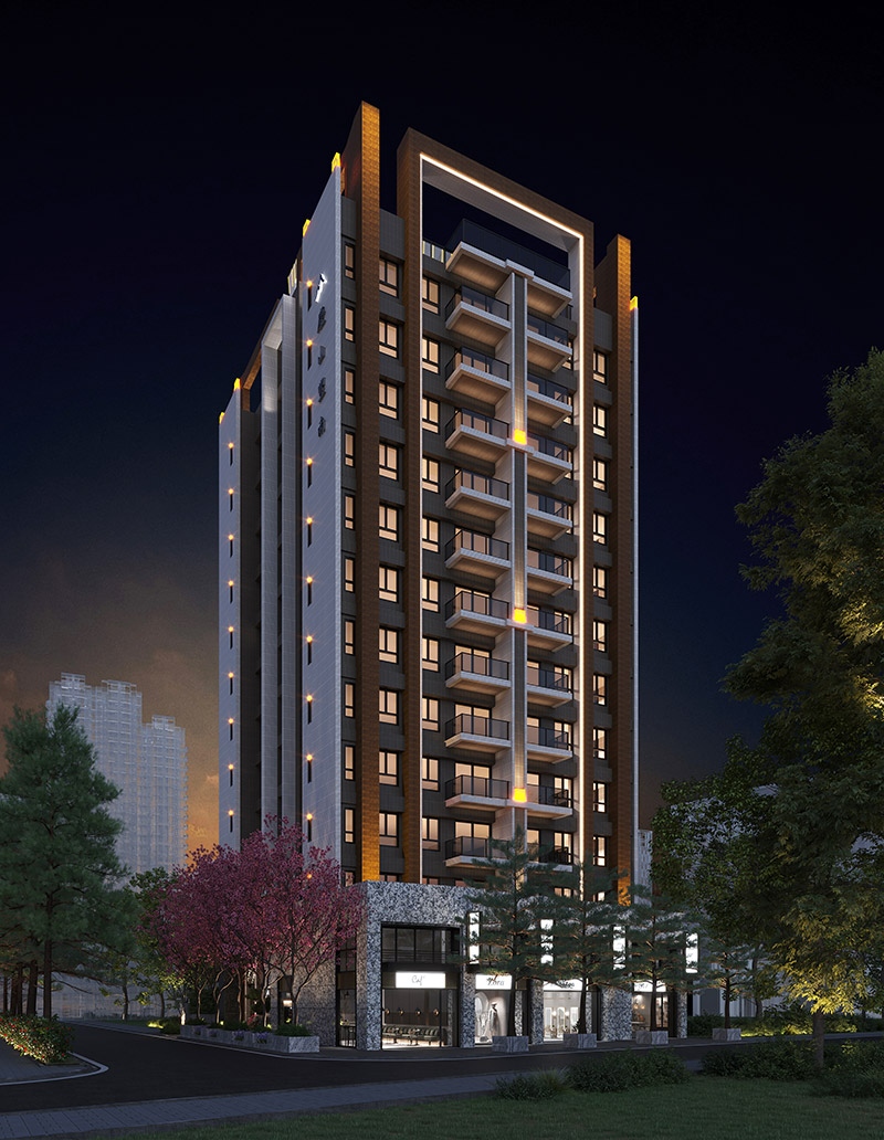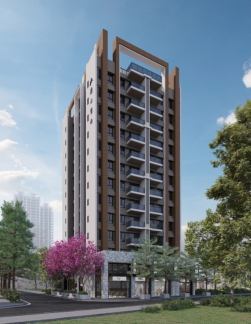 在現代簡練語彙中,以細膩的進退創造精緻美感,被綠意包覆的建築基座,以渾厚石材呈現穩重大器,再讓線條展向天際,勾勒不同顏色的量體、不同層次的框架,猶如大地上的立體雕塑,安靜卻搶眼地表達出眾氣質。
