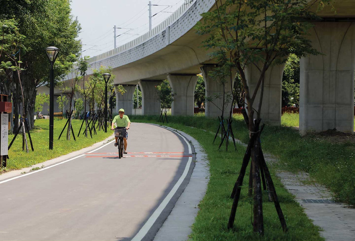 以鐵路高架後騰出的空地進行綠美化,規劃綠空廊道,設計自行車道、人行步道與街角運動廣場等設施,藉由這休閒空間打造低碳綠生活,並提升都市景觀。