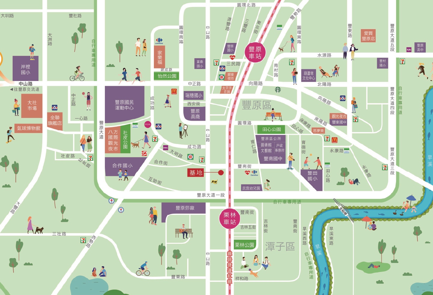 早市採買,散步可達;商圈購物,開車很快,超暢快的豐原大道,不過300公尺距離,拉近與國道1號的時間距,外出通勤變得更愜意。